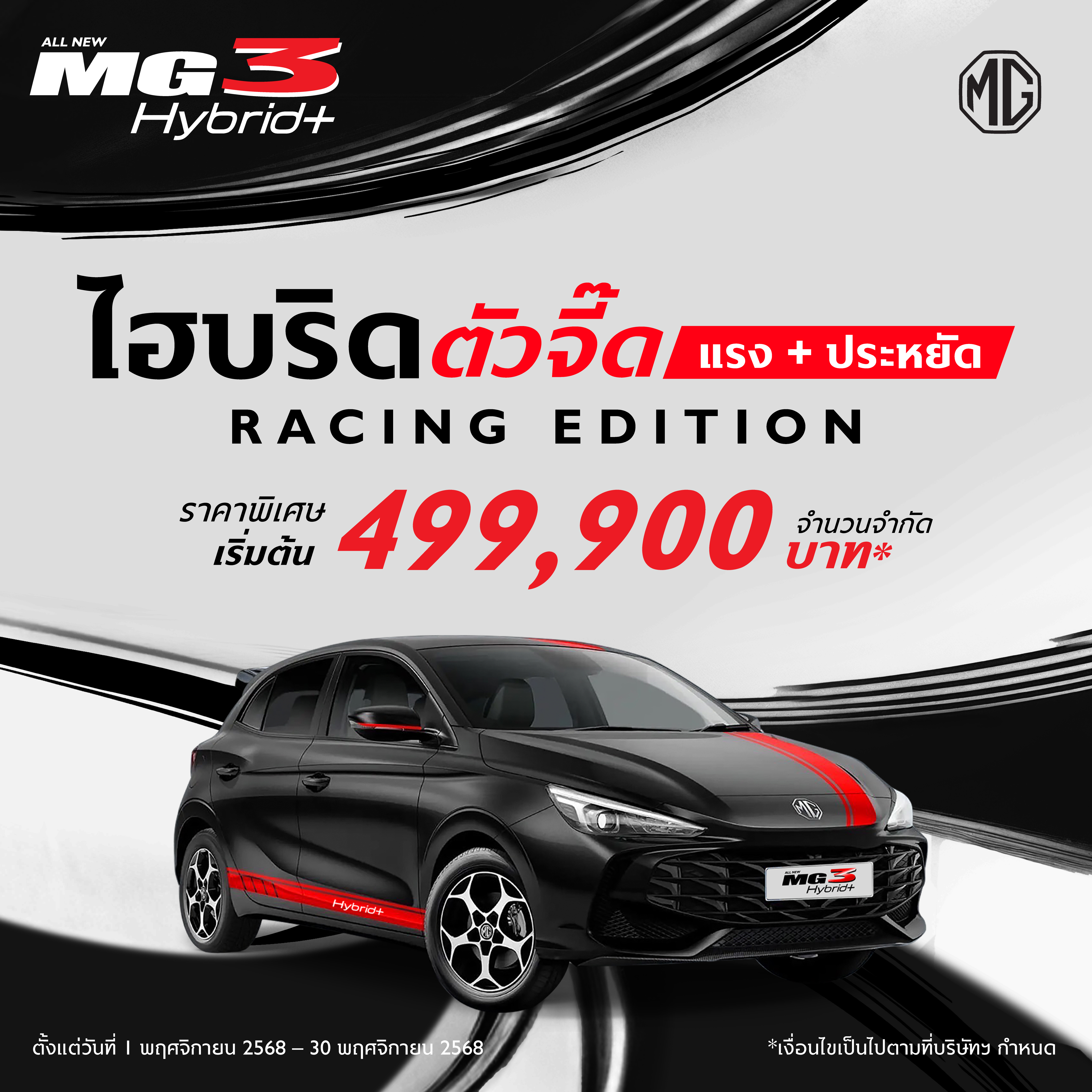 MG3 Hybrid+ Racing Edition ราคาพิเศษ 499,900 บาท* จำนวนจำกัด