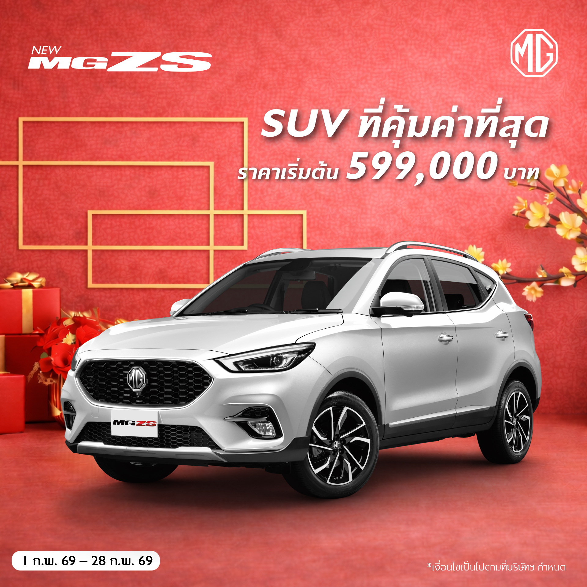 - เงื่อนไขทั้งหมดสำหรับลูกค้าที่จอง และรับรถกับผู้จำหน่ายรถยนต์เอ็มจีทุกแห่งทั่วประเทศ ตั้งแต่วันที่ 1 กุมภาพันธ์ 2569 ถึง 28 กุมภาพันธ์ 2569