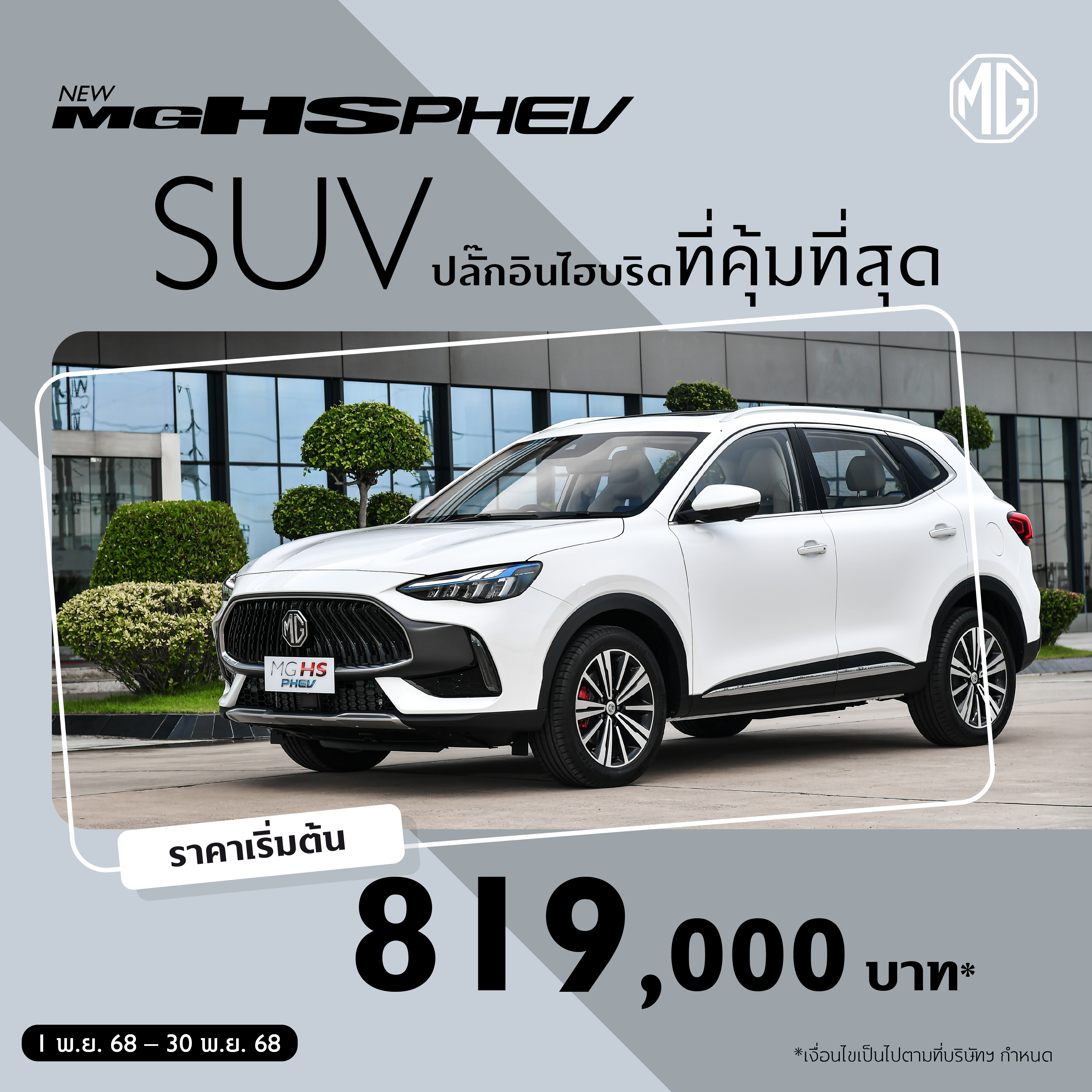 เป็นเจ้าของ NEW MG HS PHEV ได้ในราคาเริ่มต้น 819,000 บาท*