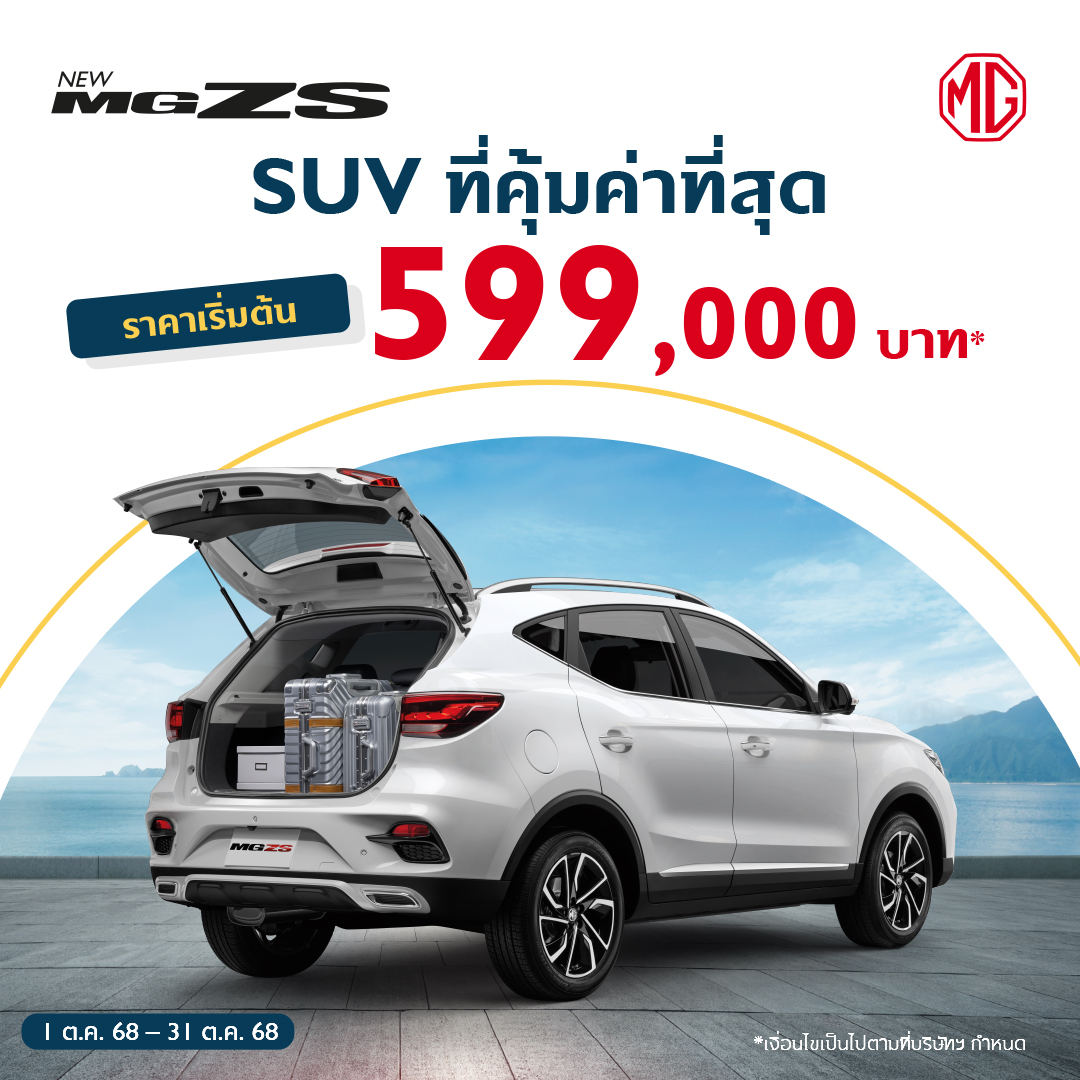 NEW MG ZS รถ SUV ที่คุ้มที่สุด ราคาพิเศษเริ่มต้น 599,000 บาท*