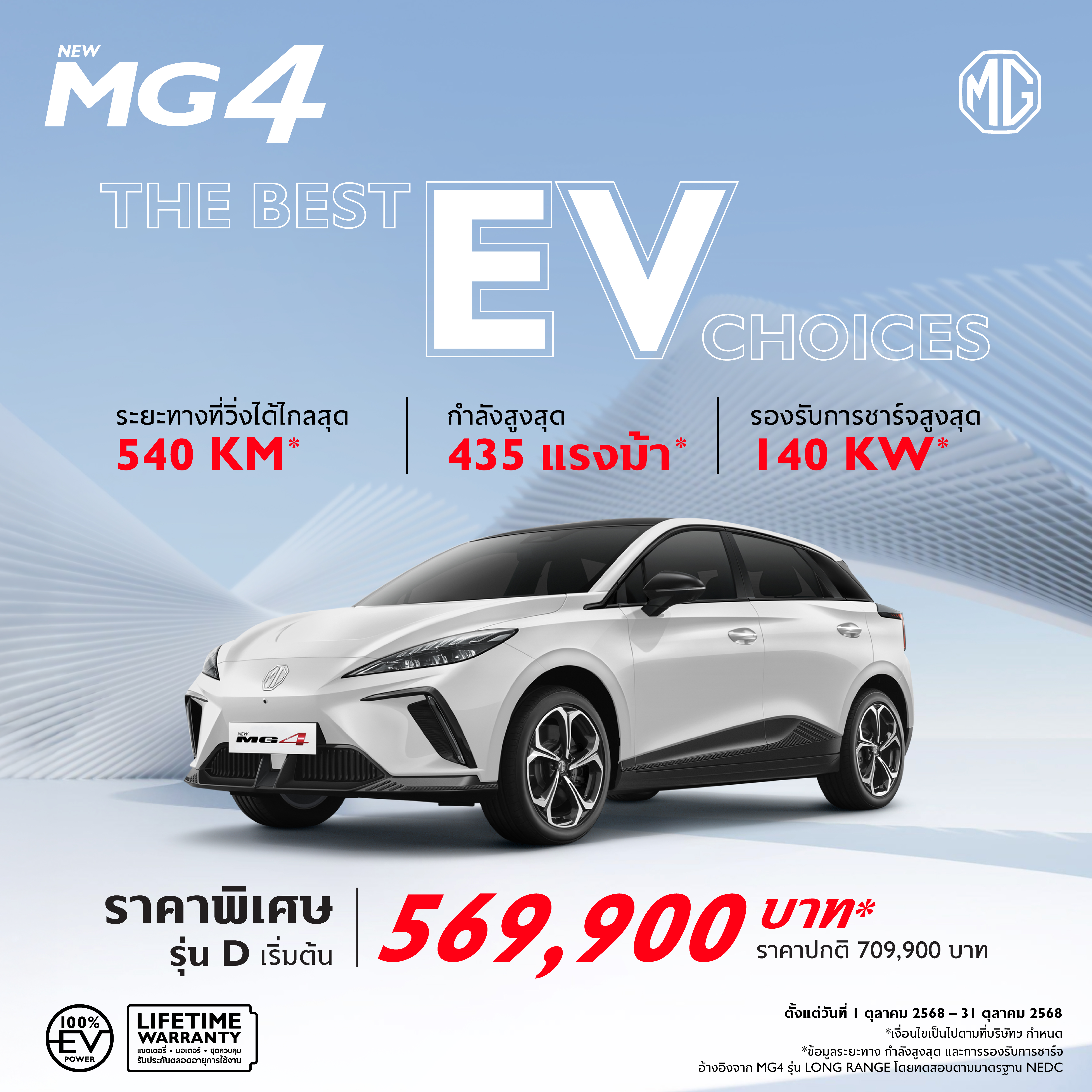 ข้อเสนอพิเศษสำหรับ New MG4 Standard Range รุ่น D และ X, Long Range รุ่น V และ XPOWER